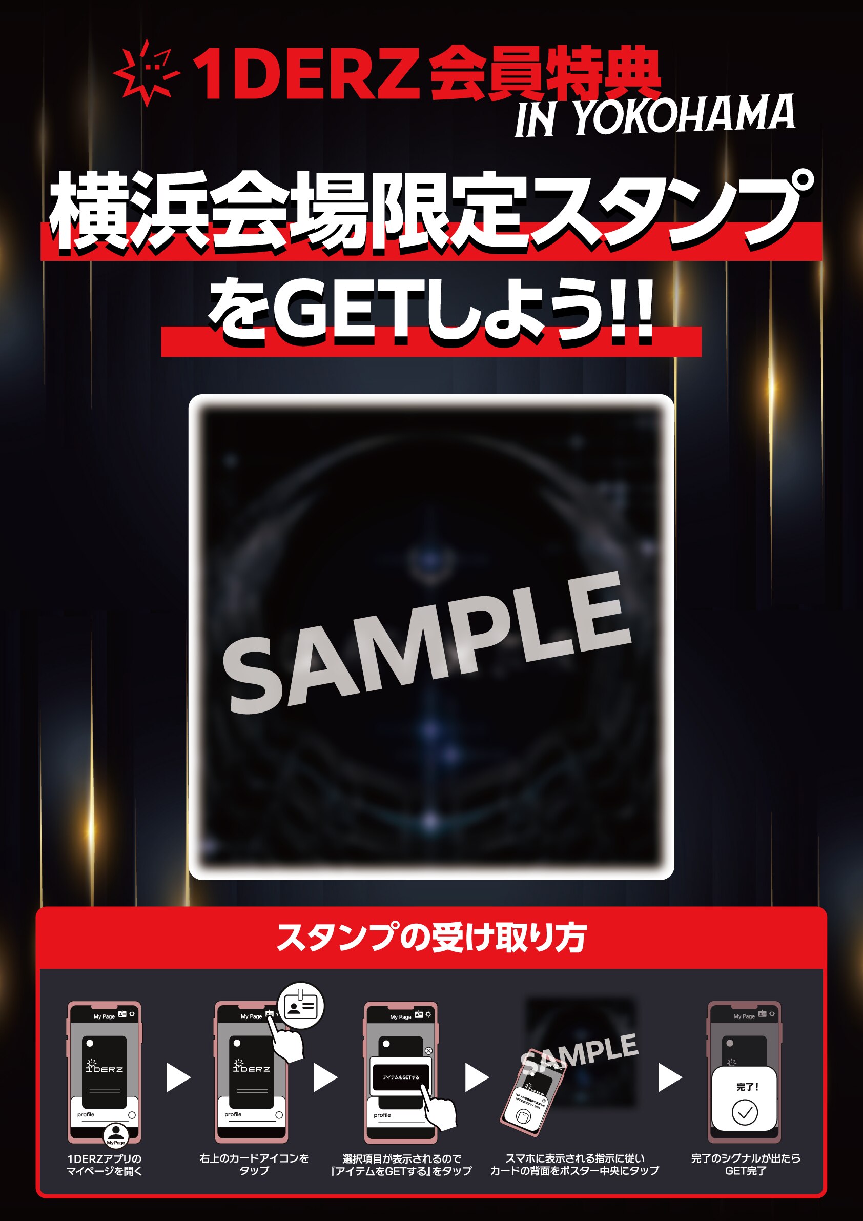 指定の箇所にスマートフォンをかざしていただくと、1DERZアプリ上で来場スタンプをゲット!