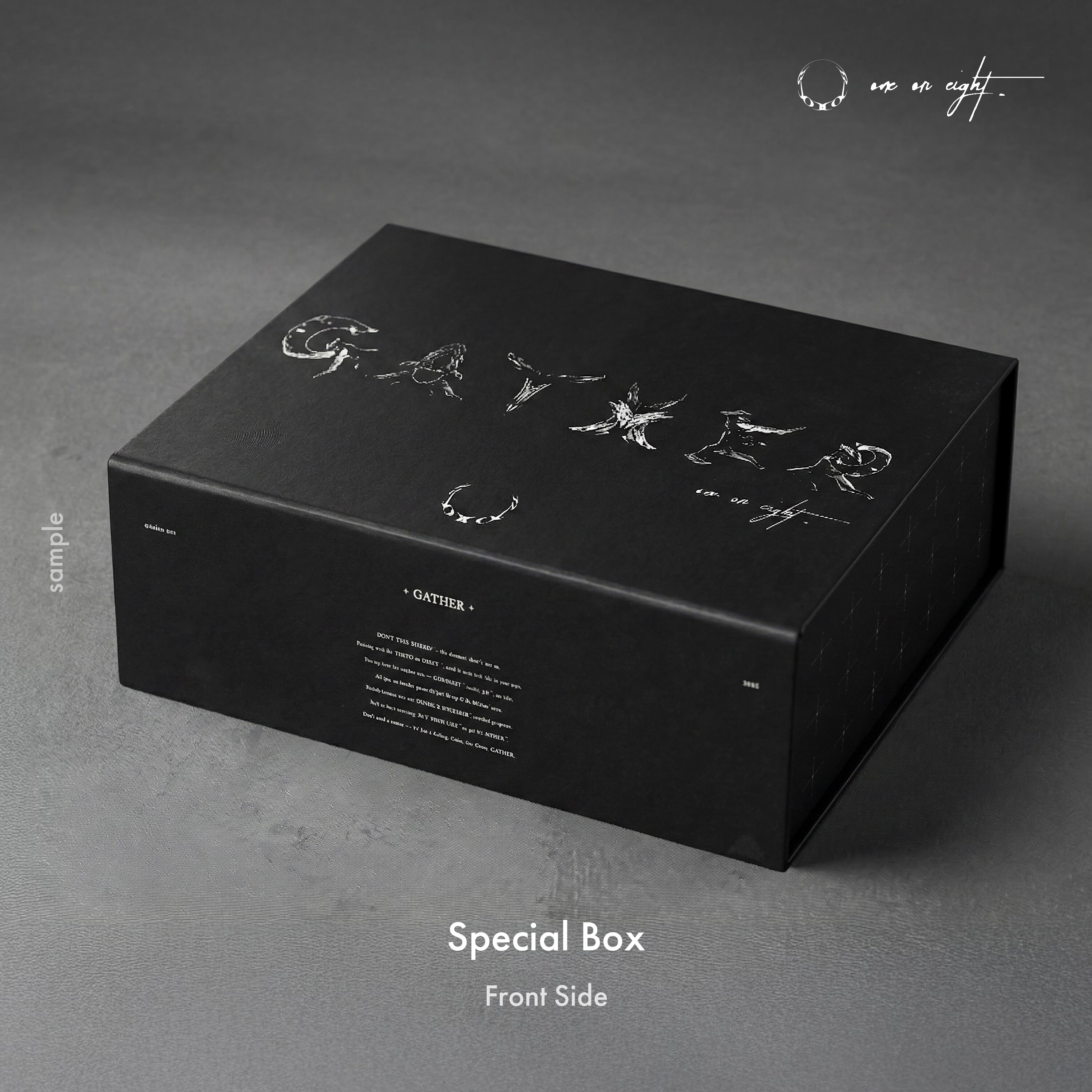 デビュー前、まだ名前も知られていなかった頃から、“GATHER(会うこと)”を選んできたONE OR EIGHTらしい特典内容となっています。さらに、グッズを収納できるスペシャルボックスもついてくるので、あなた自身の手でお気に入りのアイテムを“GATHER(集め)”、メンバーとの思い出を詰め込んだあなただけの『GATHER BOX』を完成させてください。